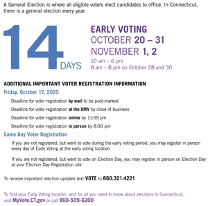 November 4, 2025: Same Day Registration Hall/Voting available at Terryville High School.